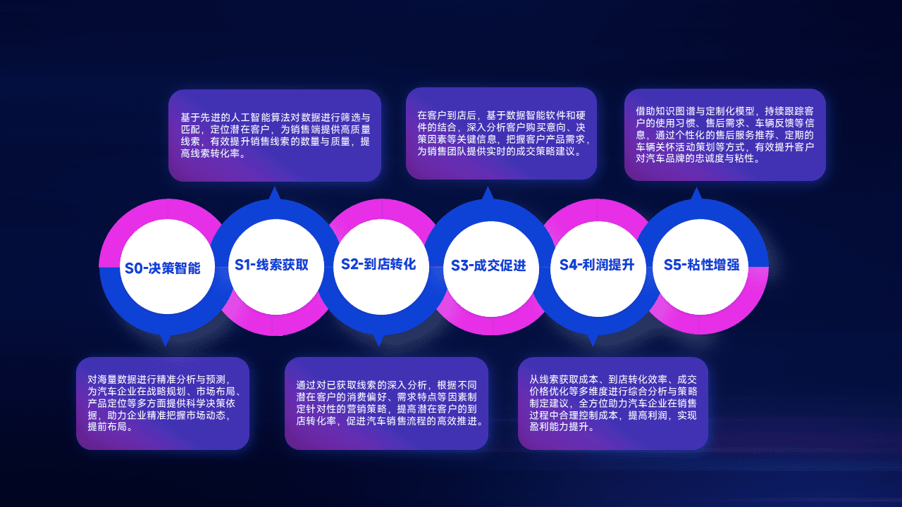 通过拓宽潜在客户来源、、、、优化线索分配并提高到店转化率,,,以增强销售效率。。。同时,,,利用线索数据不断优化分析模型,,,有效提升转化率,,,扩大营销影响力。。。